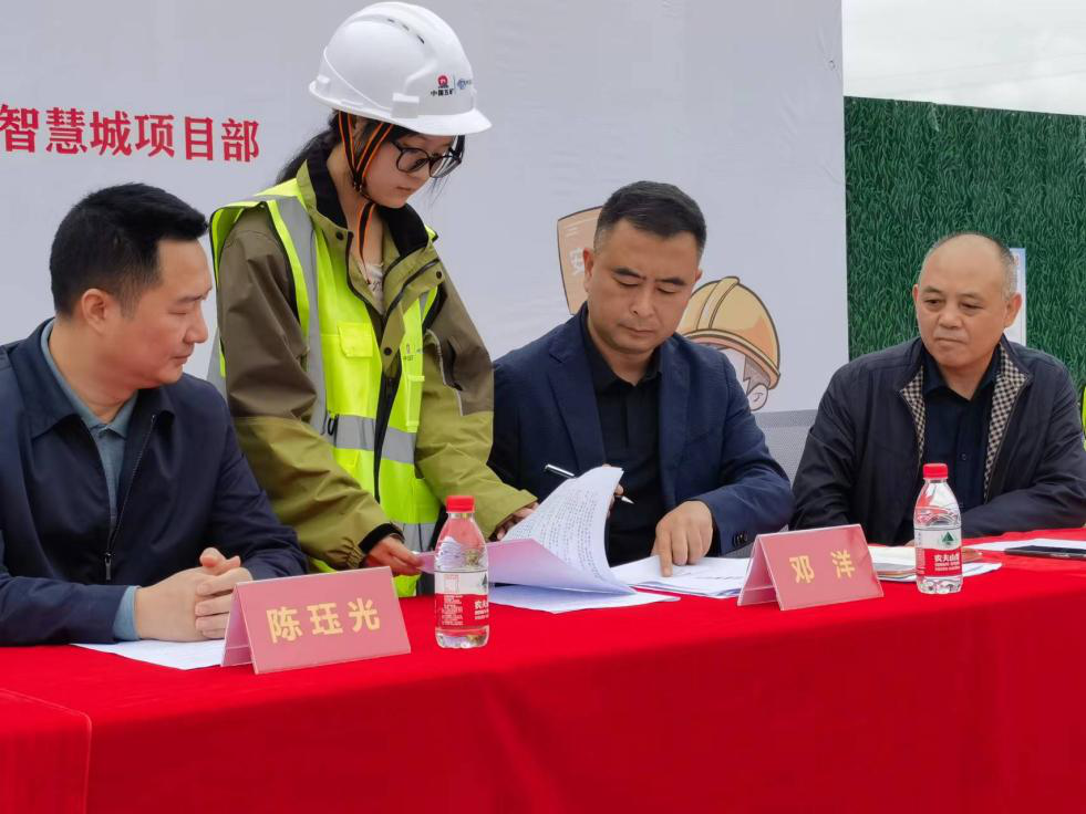 儀式上,全體參建人員共同宣讀安全生產(chǎn)誓詞,三方責(zé)任主體分別簽署《安全生產(chǎn)責(zé)任書》《質(zhì)量、進(jìn)度、安全文明施工責(zé)任書》。