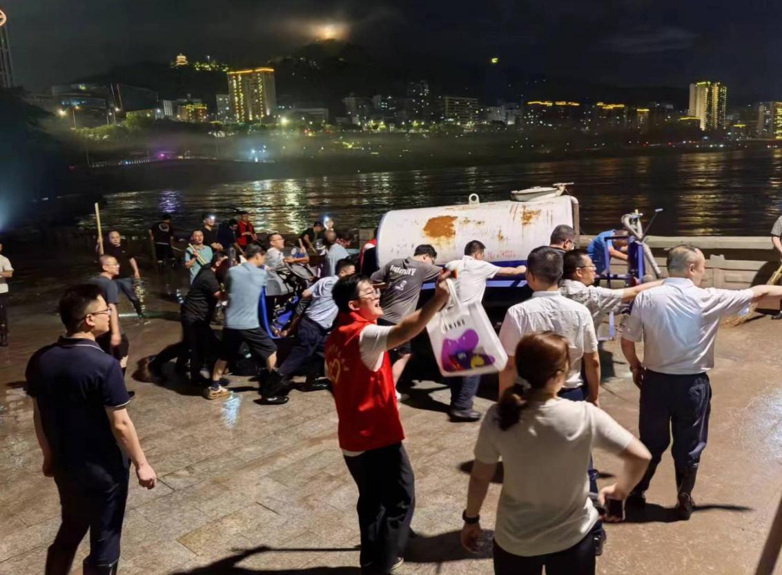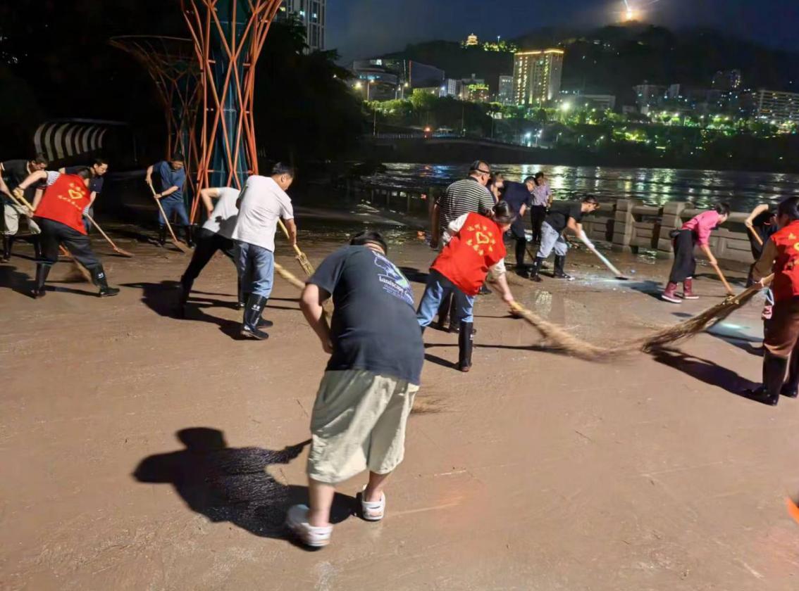 近日,受持續(xù)強(qiáng)降雨影響,達(dá)州洲河河水暴漲,汛情告急。7 月11日晚六時(shí)許,接市防汛抗旱指揮部開(kāi)展清淤工作指令后,達(dá)州發(fā)展(控股)有限責(zé)任公司聞令而動(dòng)、主動(dòng)擔(dān)當(dāng)作為,在公司黨總支書(shū)記童鑫的領(lǐng)隊(duì)下,全體職工身著“志愿服務(wù)隊(duì)”服裝迅速奔赴塔坨廣場(chǎng)濱河游園開(kāi)展清淤工作。