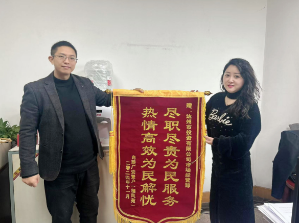11月19日,原肉聯(lián)廠安置房住戶將一面寫著“盡職盡責(zé)為民服務(wù) 熱情高效為民解憂”的錦旗送到市投資公司,感謝公司圓了他們17年的“安居夢”。
